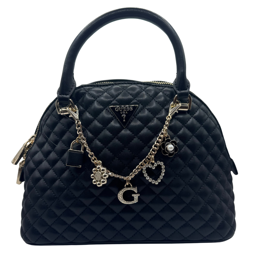 Guess Black Quilted Rounded Handbag with Charm Detail