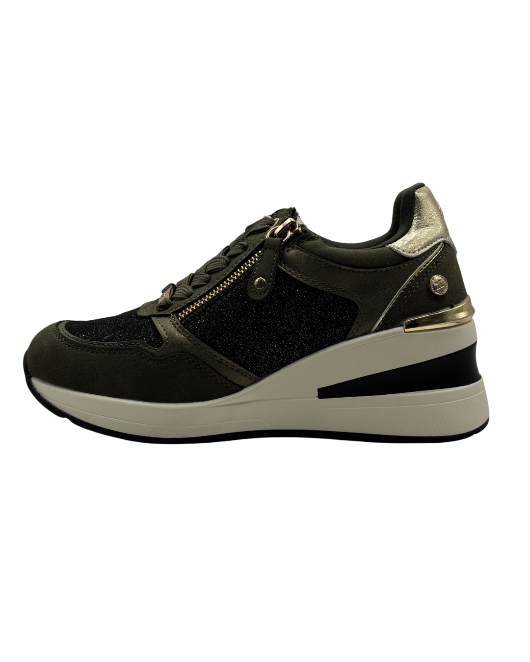 XTI Sparkle Green Wedged Trainer with Gold Detail