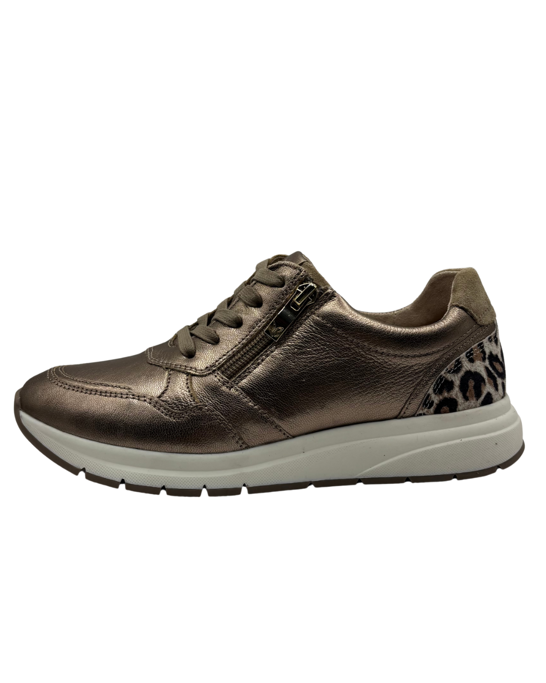 Caprice Metallic Gold Trainer with Leopard Print