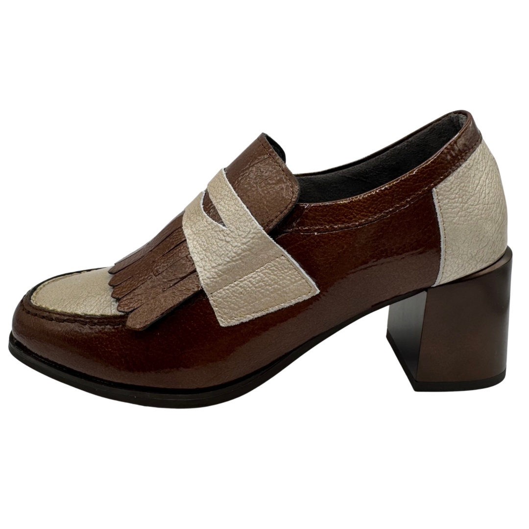 Pitillos Brown Patent Heeled Shoe with Beige Detail