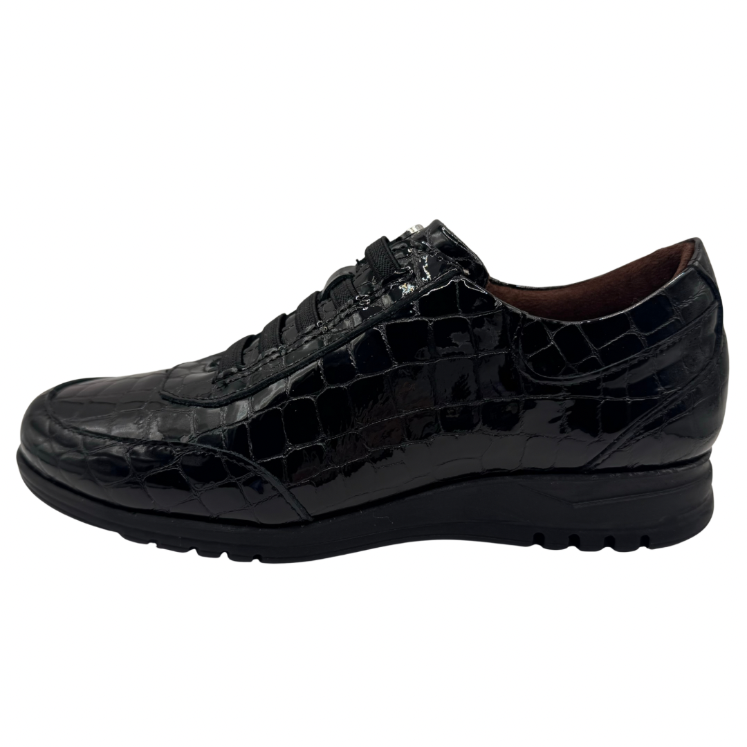 Pitillos Black Patent Wedged Shoes with Elasticated Laces