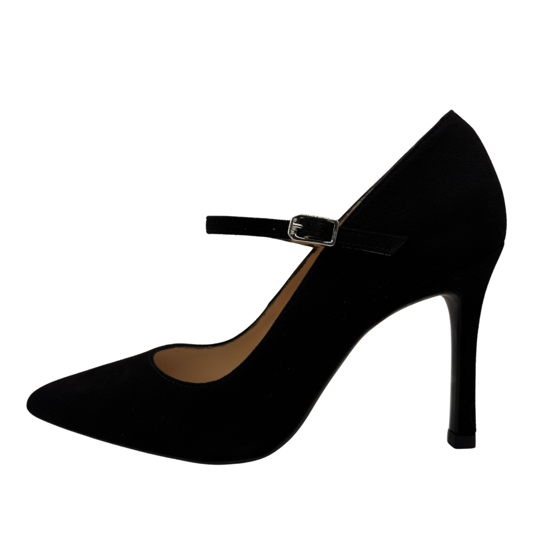 Dancing Matilda Black Patent Pointed Heeled Shoe with Strap
