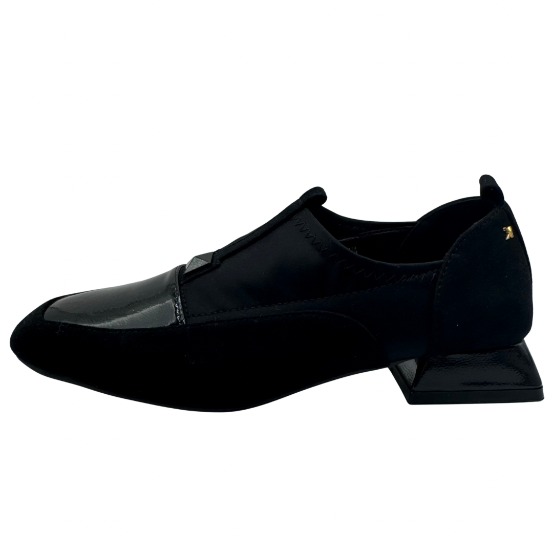 Pitillos Black Patent Slip On Shoe with Block Heel