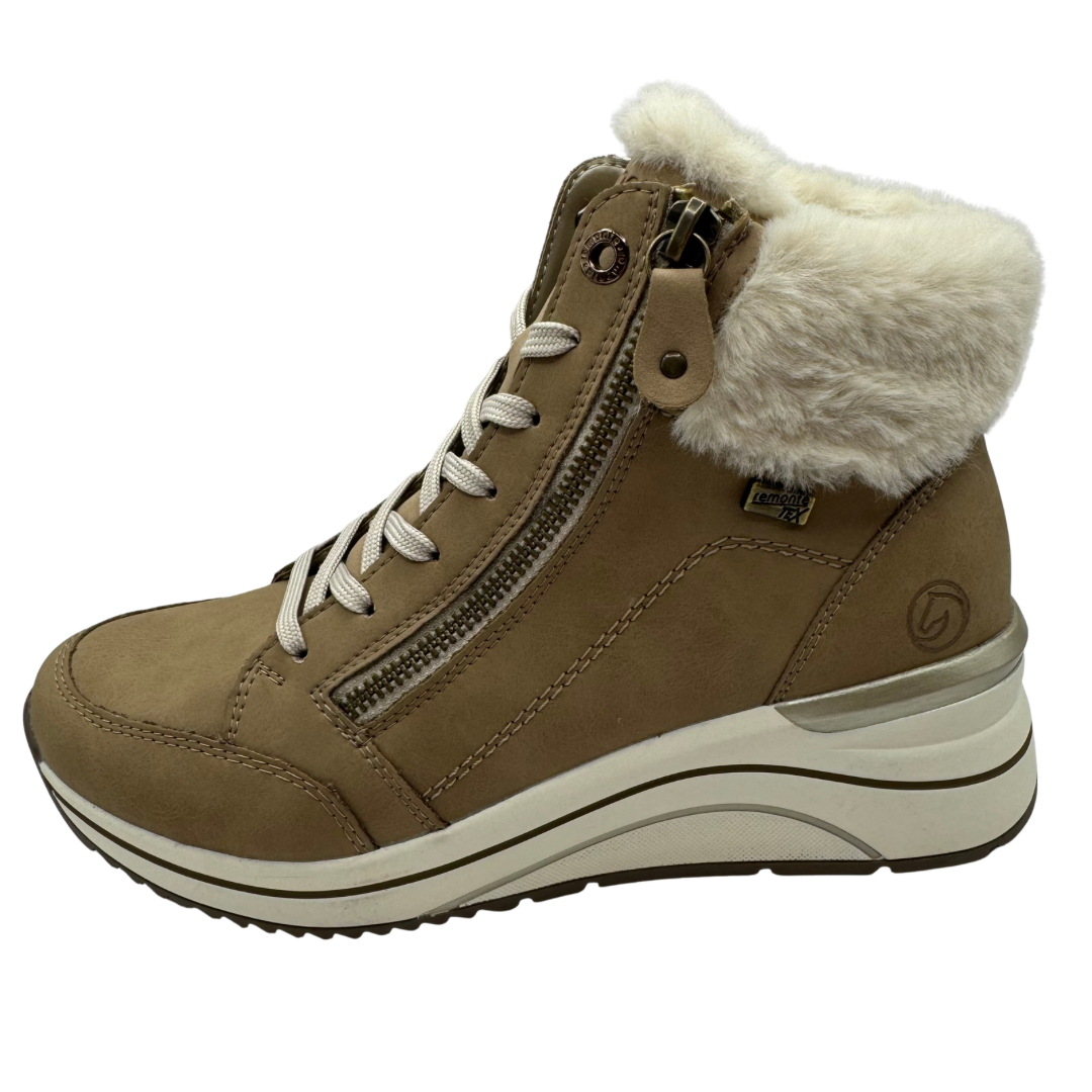 Remonte Brown, Bronze & Leopard Print Wedged Trainer Boots with Front Zip