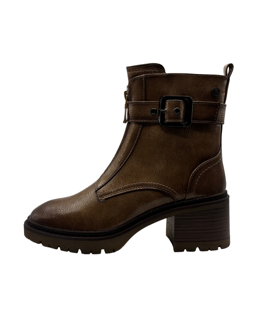 XTI Brown Wedged Loafer with Gold Buckle Detail