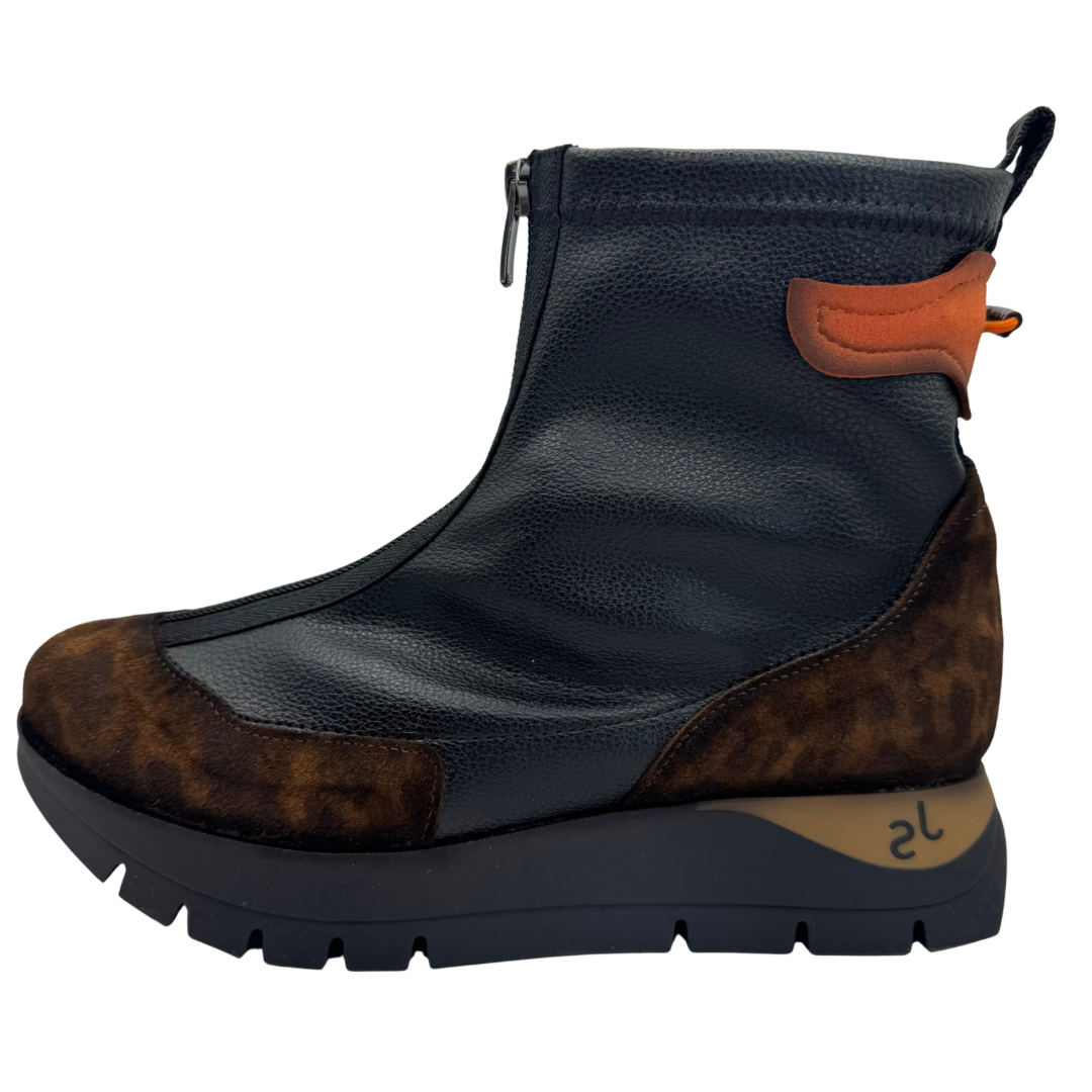 Jose Saenz Black & Leopard Print Boots with Orange Detail