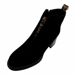 Loretta Vitale Black Suede Heeled Boots with Leopard Print Detail