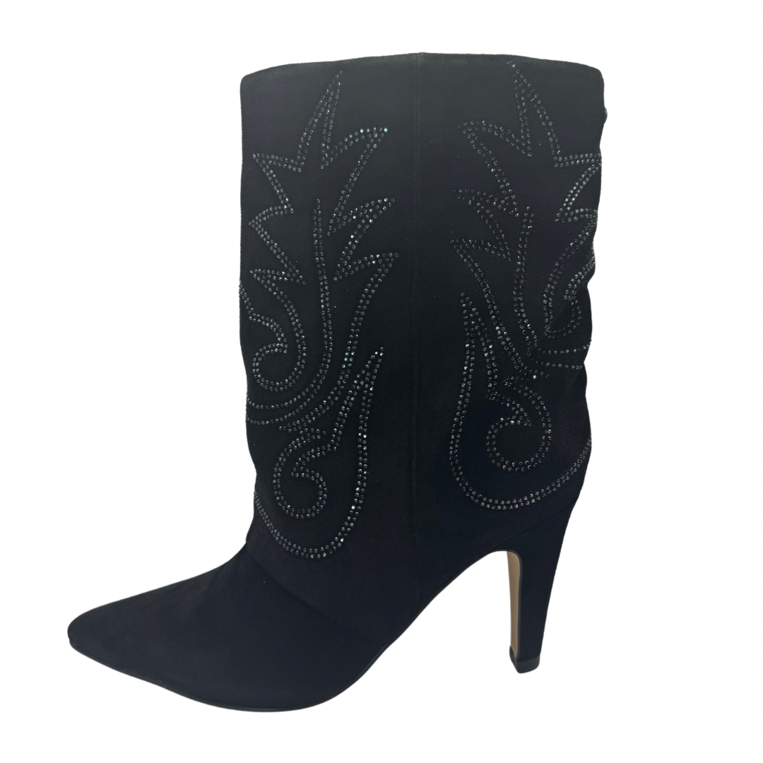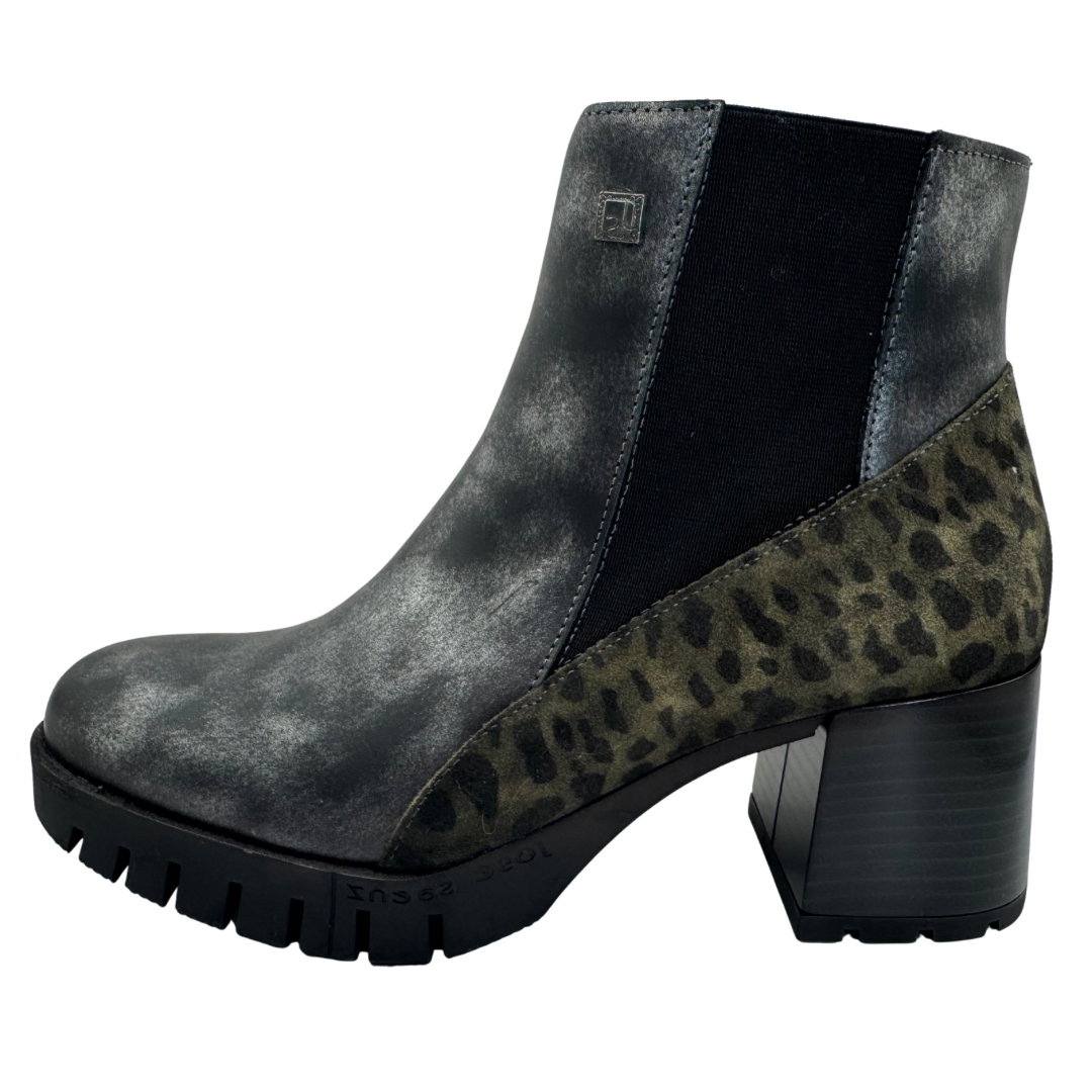 Jose Saenz Black Heeled Boots with Khaki Detail
