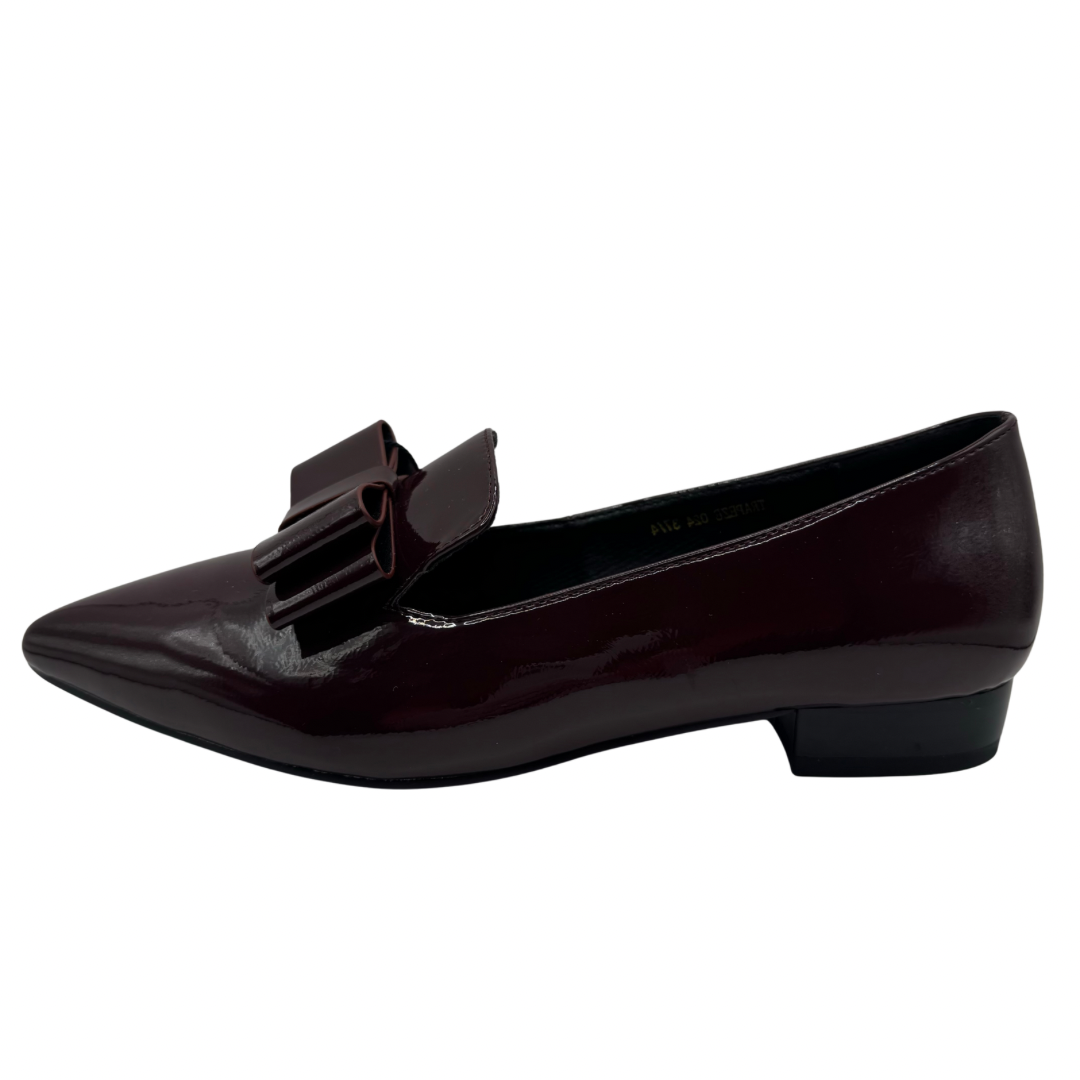Dancing Matilda Burgundy Patent Pointed Loafers with Bow Detail