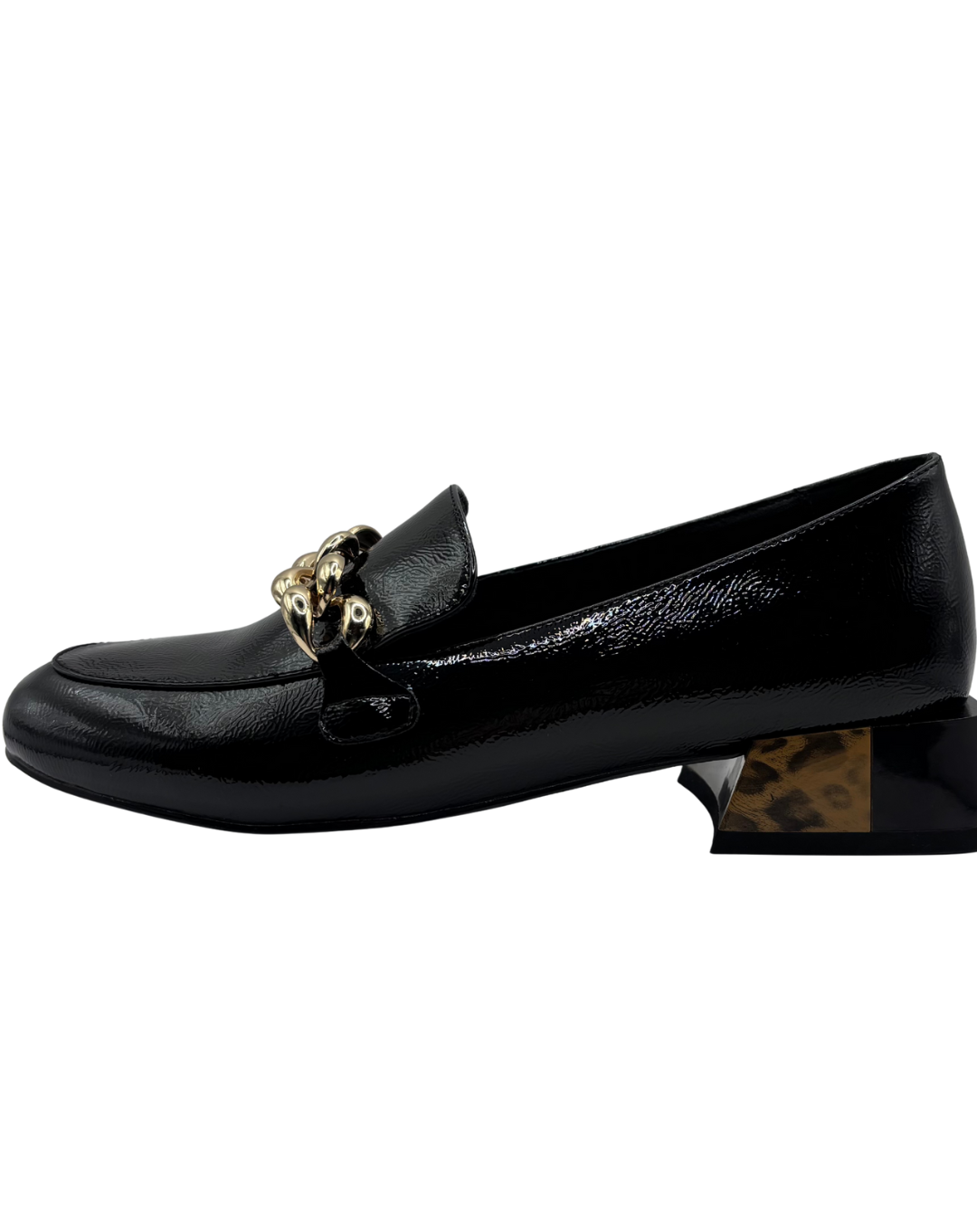 Dancing Matilda Black Patent Loafer with Gold Chain