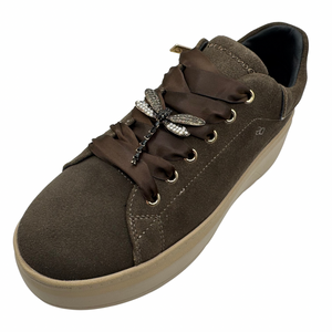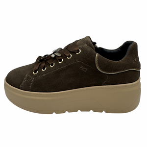 Donna Serena Brown Platform Trainers with Jewel Detail