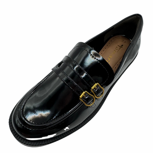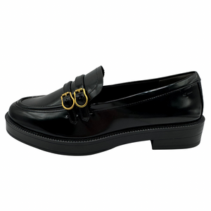 Tamaris Black Patent Loafers with Double Buckle Detail