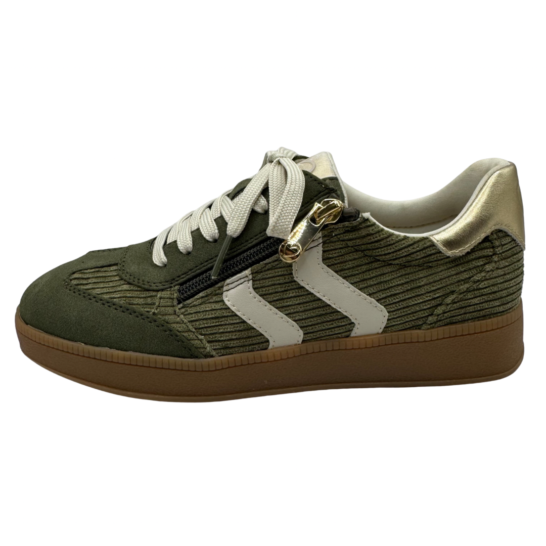 Marco Tozzi Khaki Corduroy Trainers with Side Zip