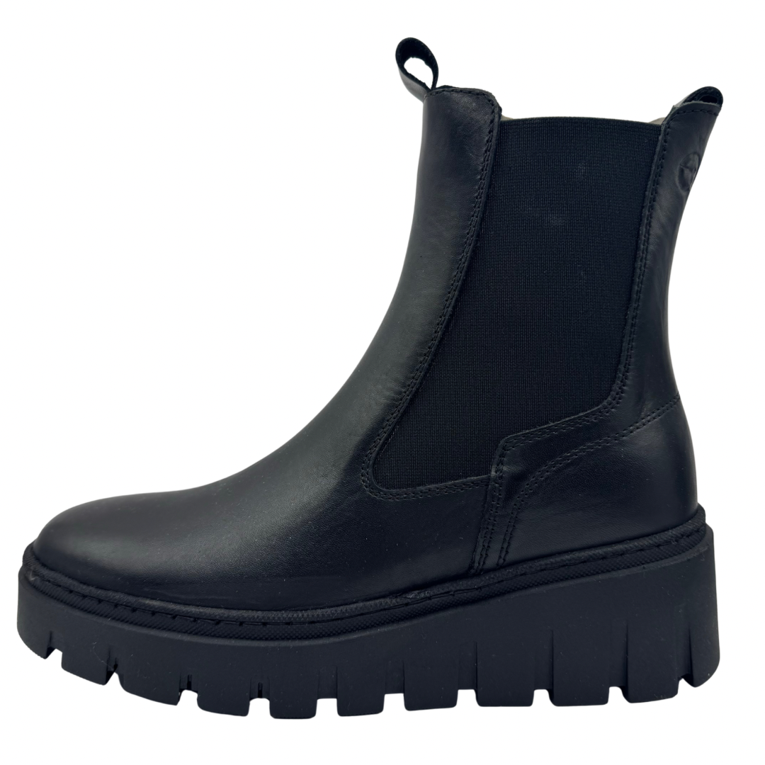 Tamaris Black Wedge Trainers with Diamanté Ddtail and Elasticated Laces