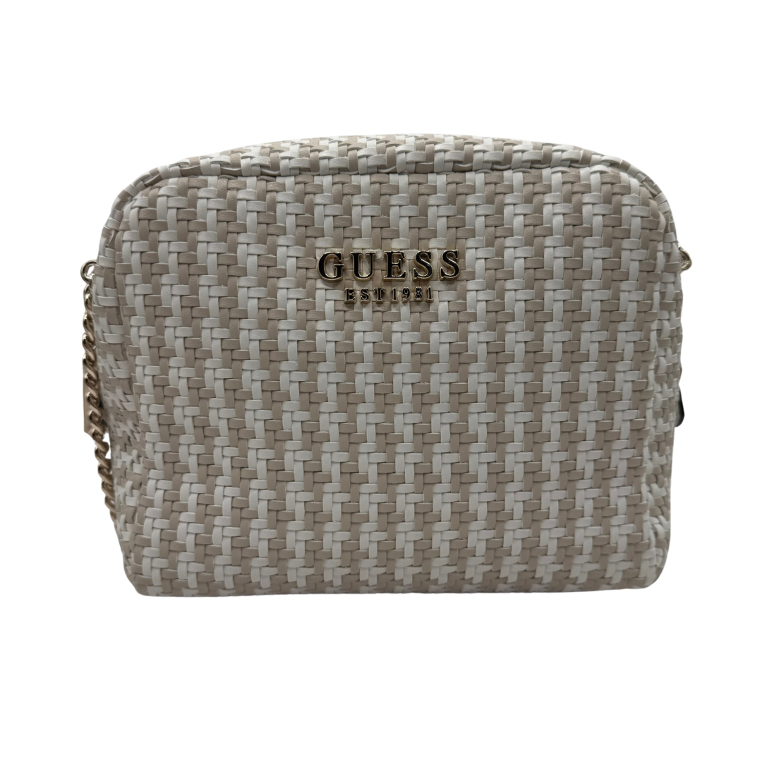 Guess Beige & White Woven Crossbody Bag