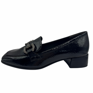 Tamaris Black Patent Loafers with Buckle Detail