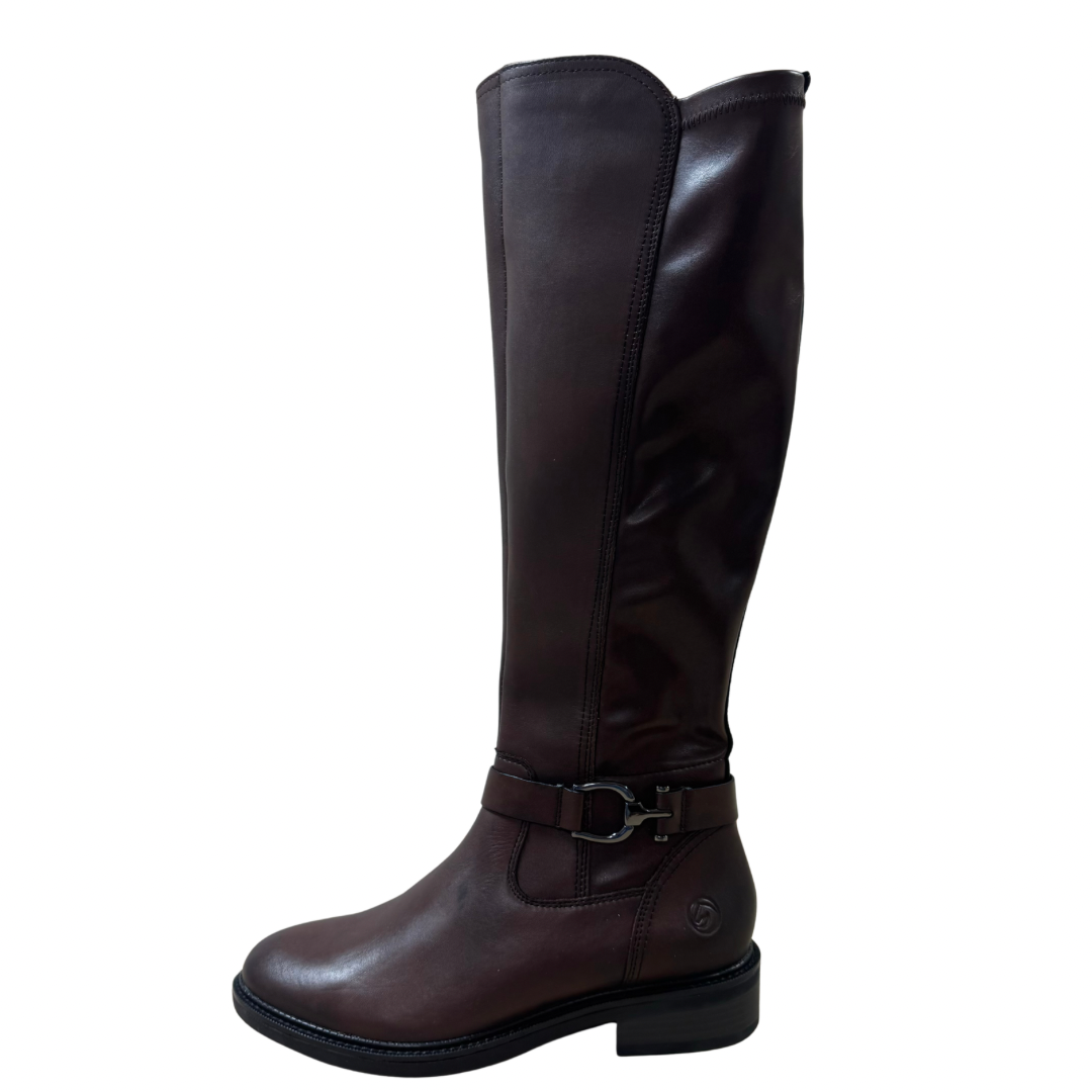 Remonte Brown Long Boots with Buckle Detail at Ankle