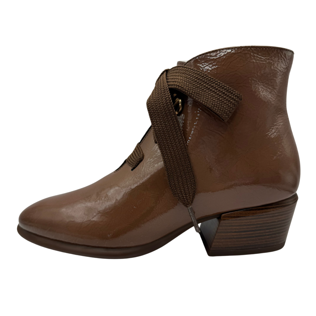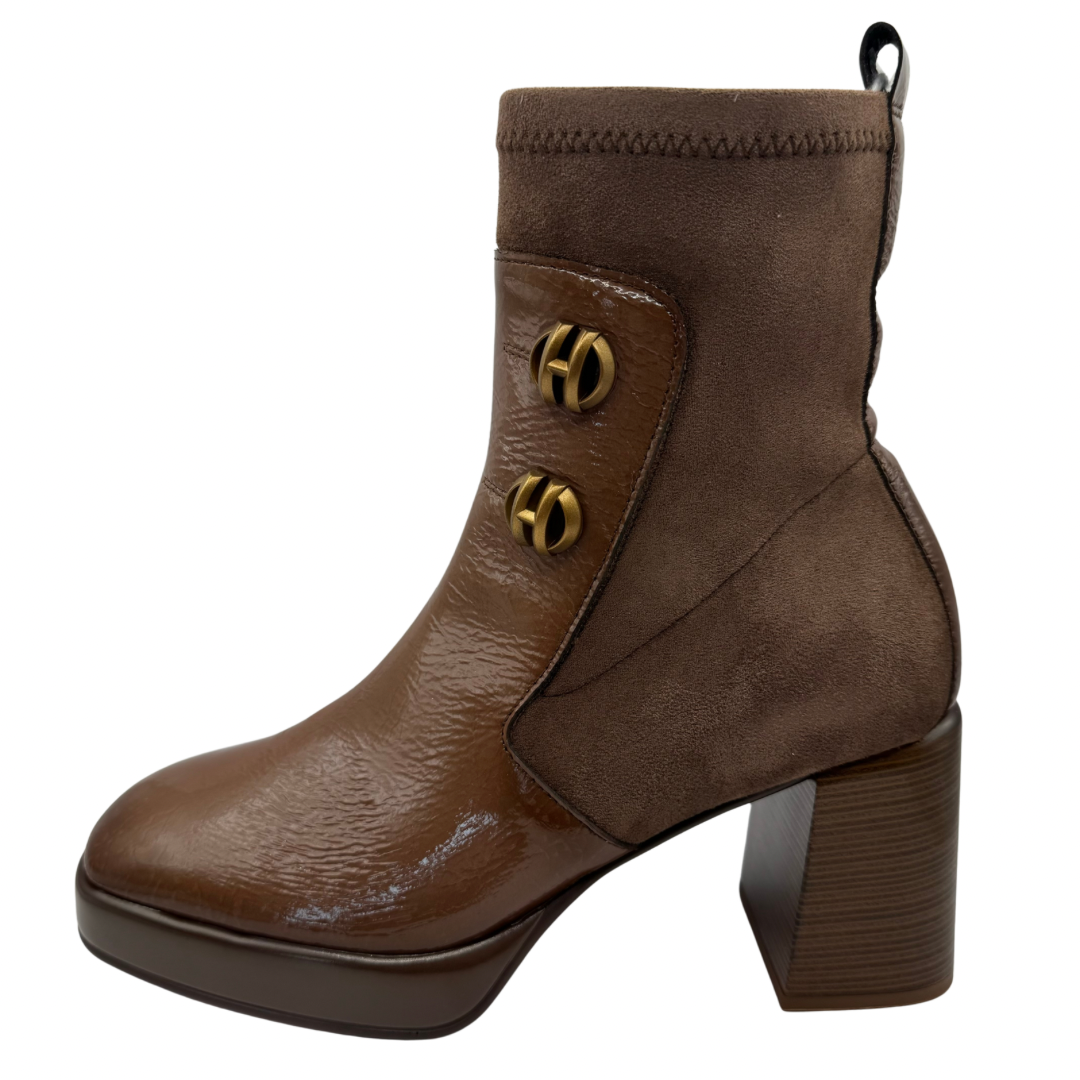Hispanitas Brown Heeled Boots with Patent and Button Detail