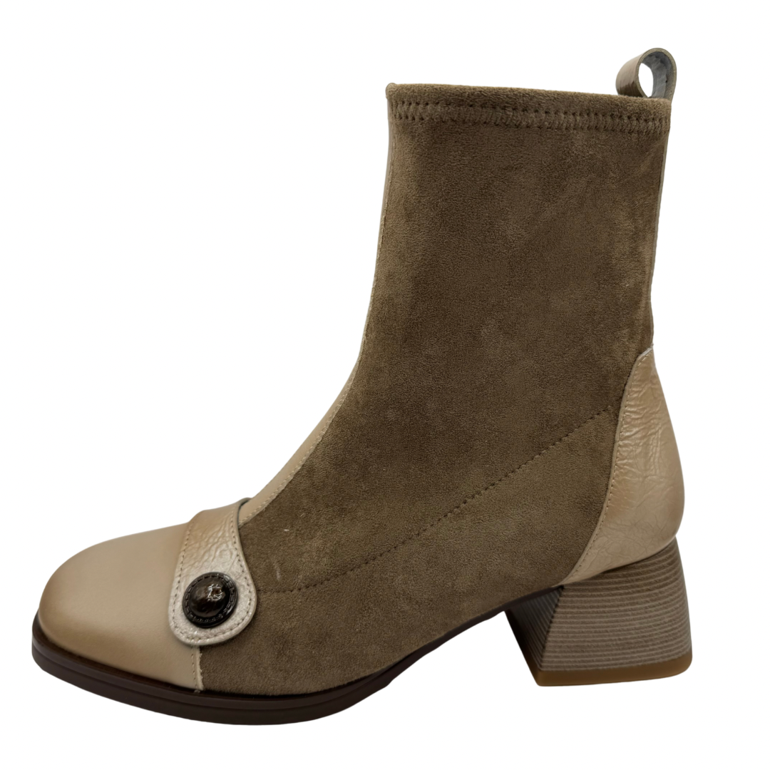 Hispanitas Beige Heeled Boots with Taupe and Button Detail