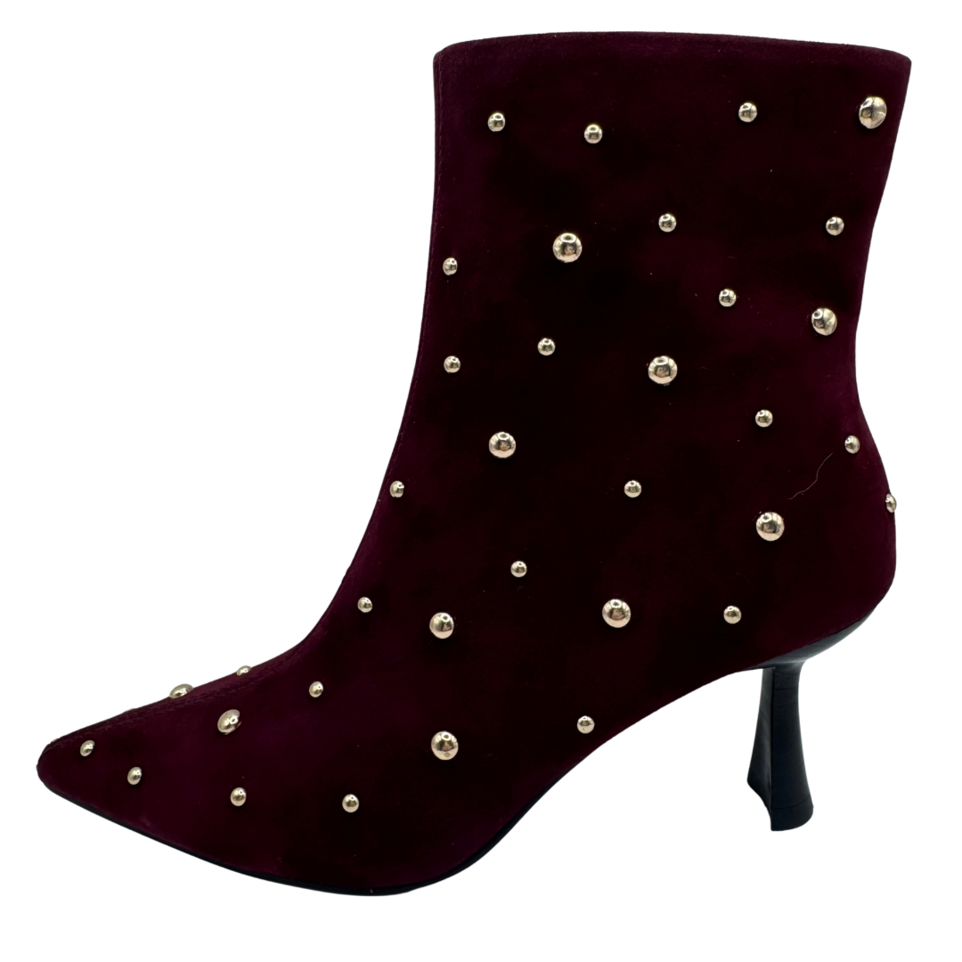 Pedro Anton Wine Heeled Boots with Gold Stud Detail