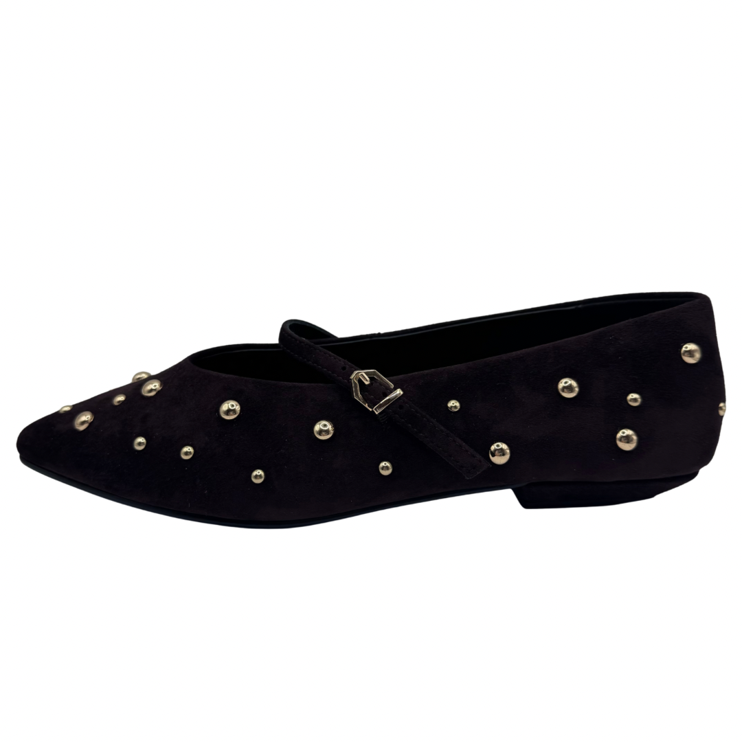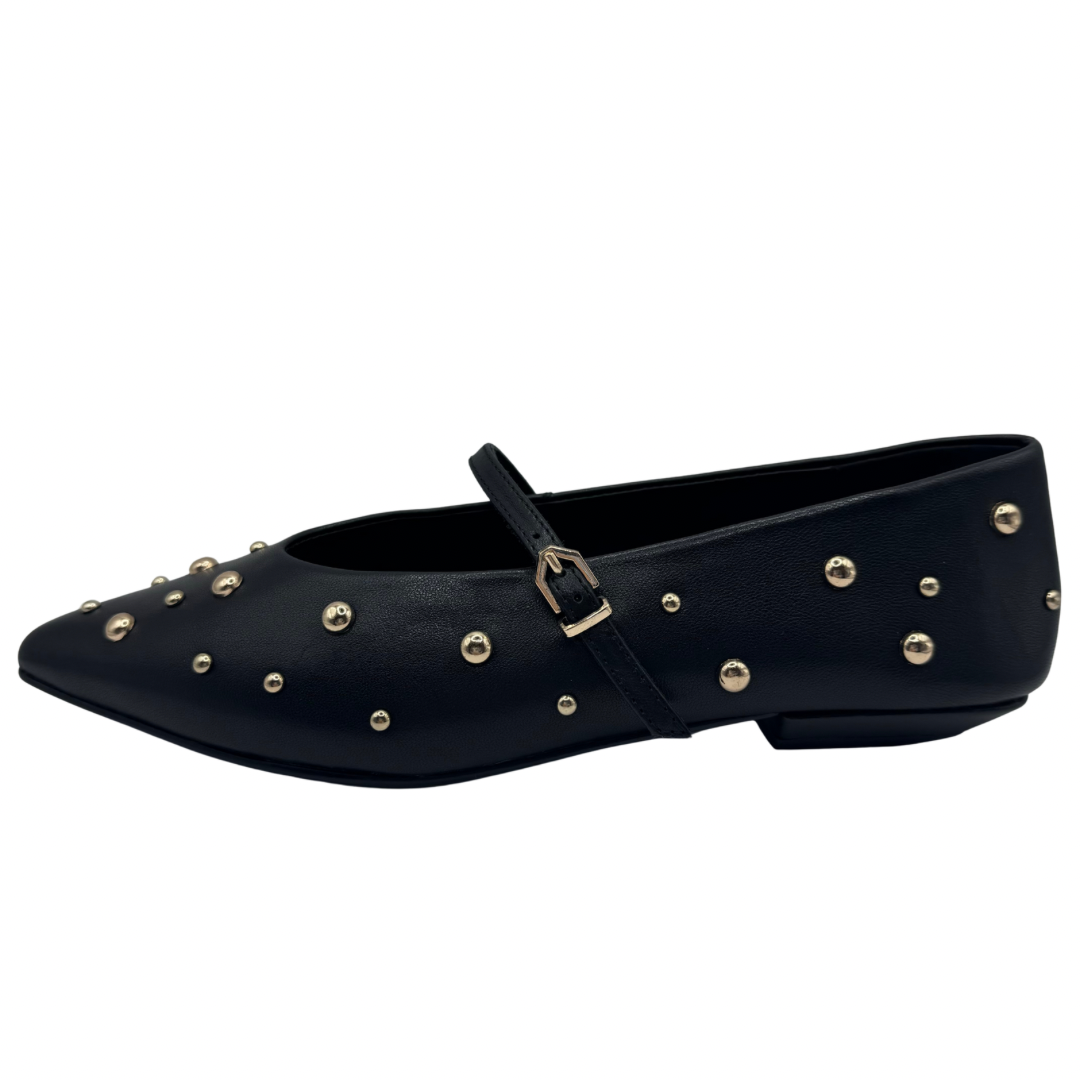 Pedro Anton Black Shoe with Buckle Strap and Gold Stud Detail