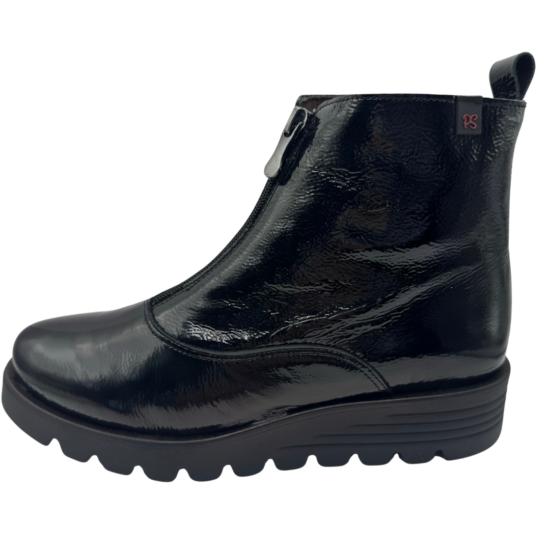 Pepe Saenz Black Patent Wedge Boot with front Zip