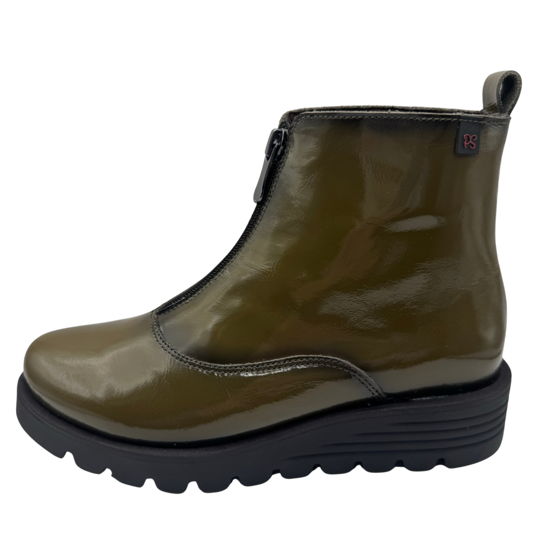 Pepe Saenz Green Patent Wedge Boot with front Zip