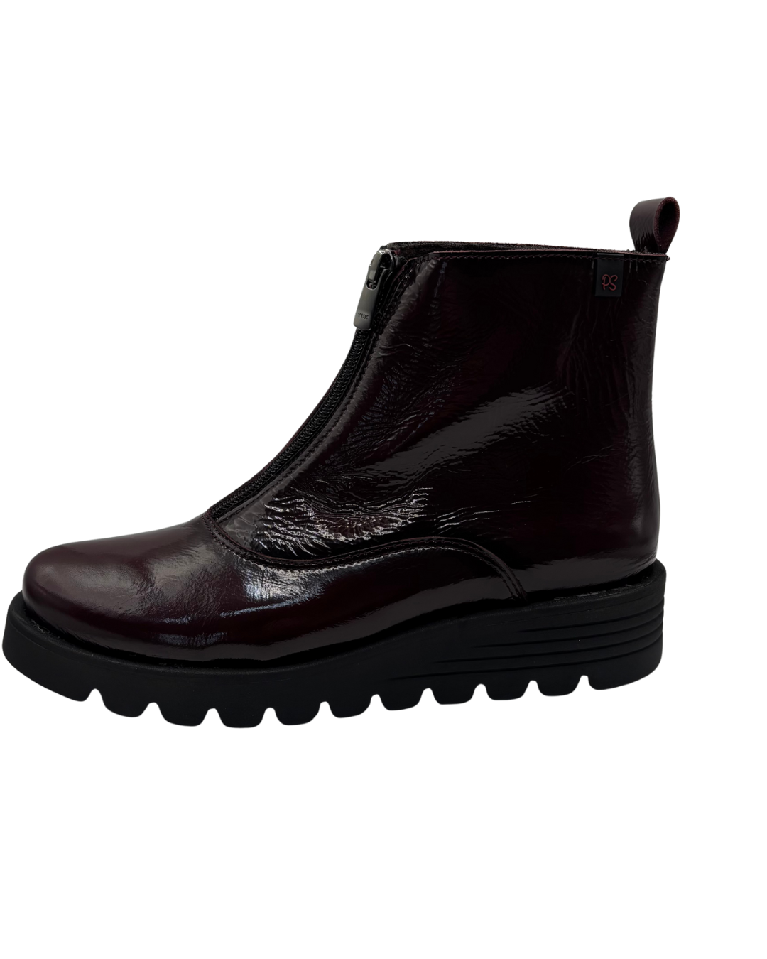 Pepe Saenz Wine Patent Wedge Boot with Front Zip