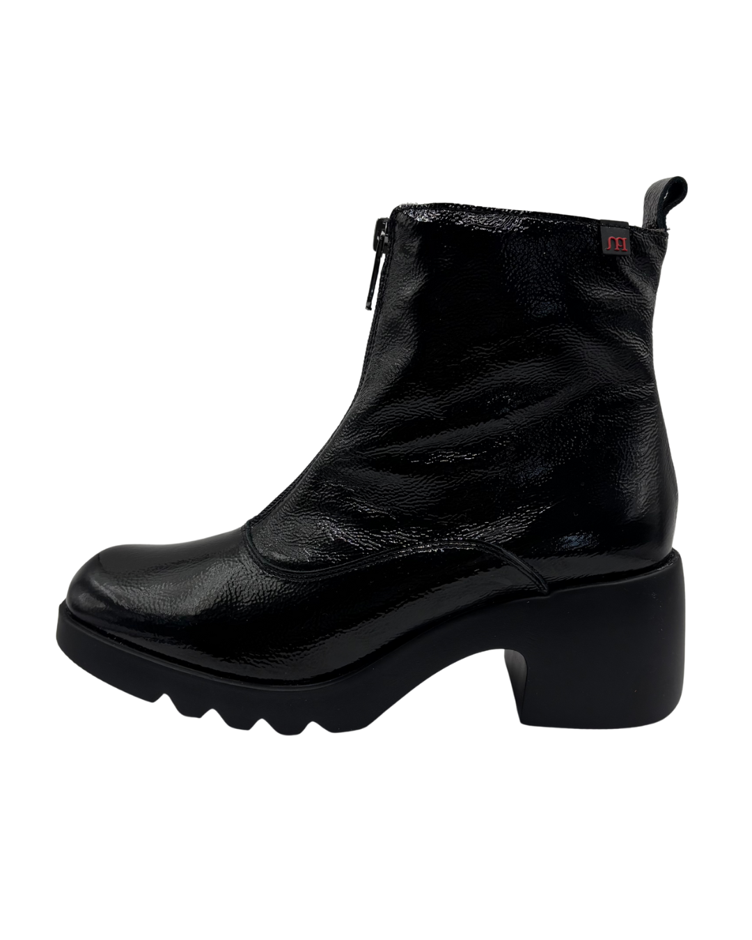 Pepe Saenz Black Patent Heeled Boot with Front Zip
