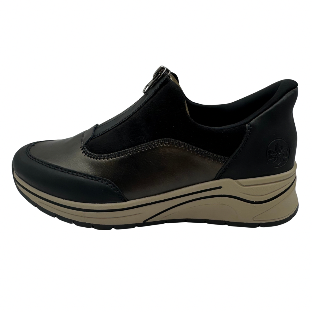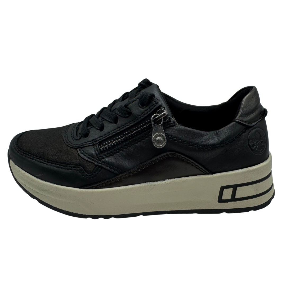 Rieker Black & Bronze Wedged Trainer Boot with Front Zip