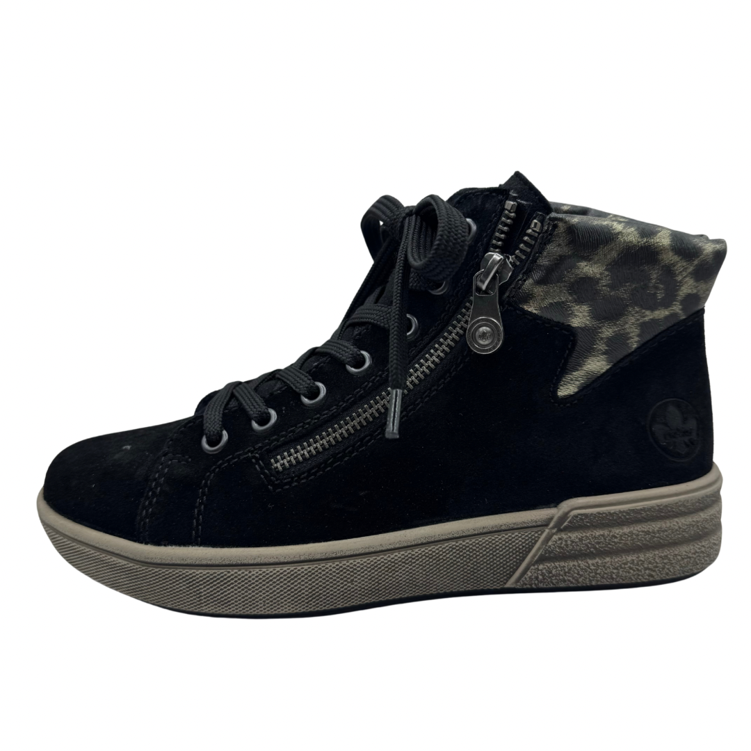 Rieker Black Trainer Boots with Leopard Print Detail