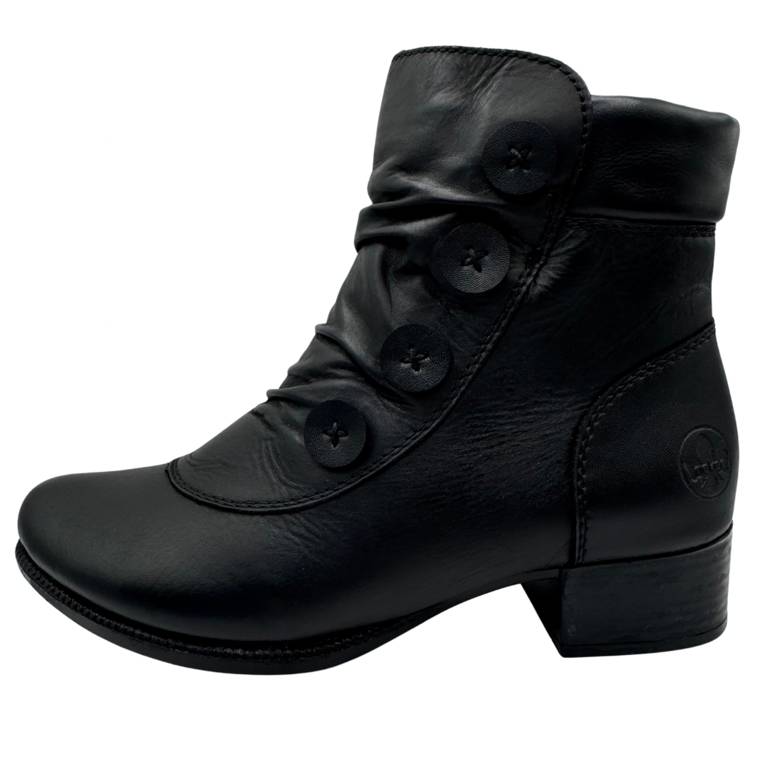 Rieker Black Heeled Boots with Button Detail