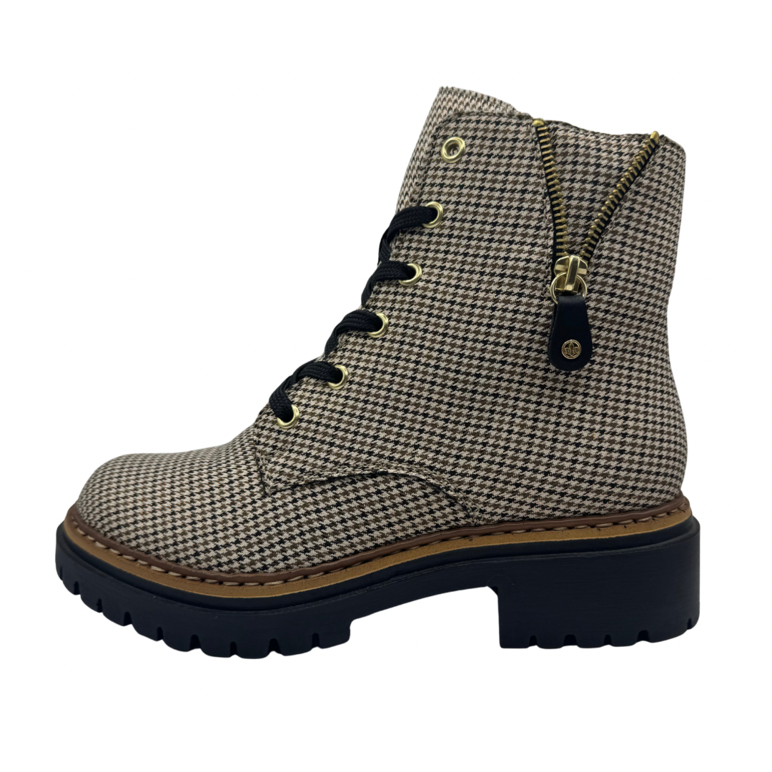 Rieker Beige Dogtooth Patterned Boots with Fleece Lining
