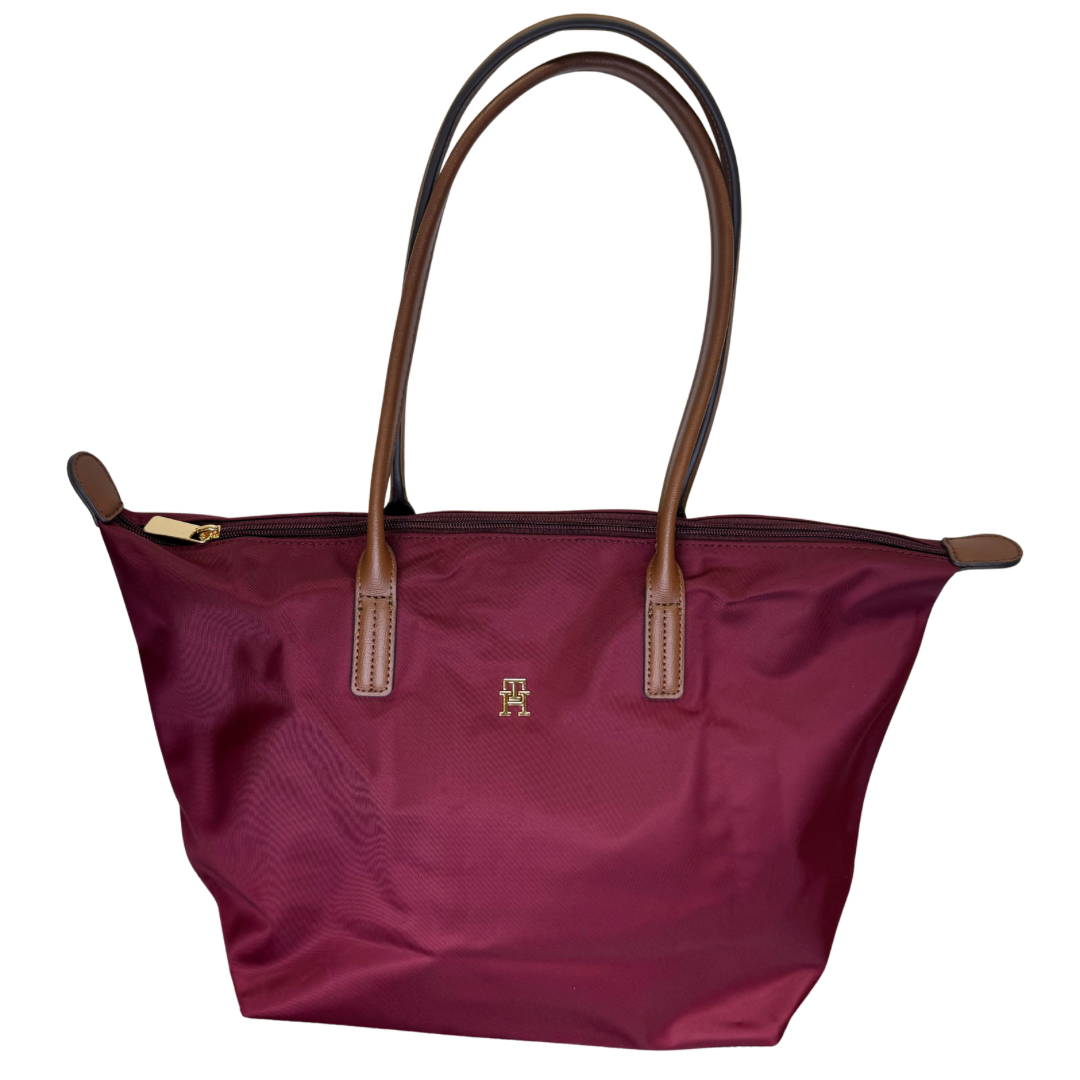 Tommy Hilfiger Burgundy Tote Bag with Brown Detail