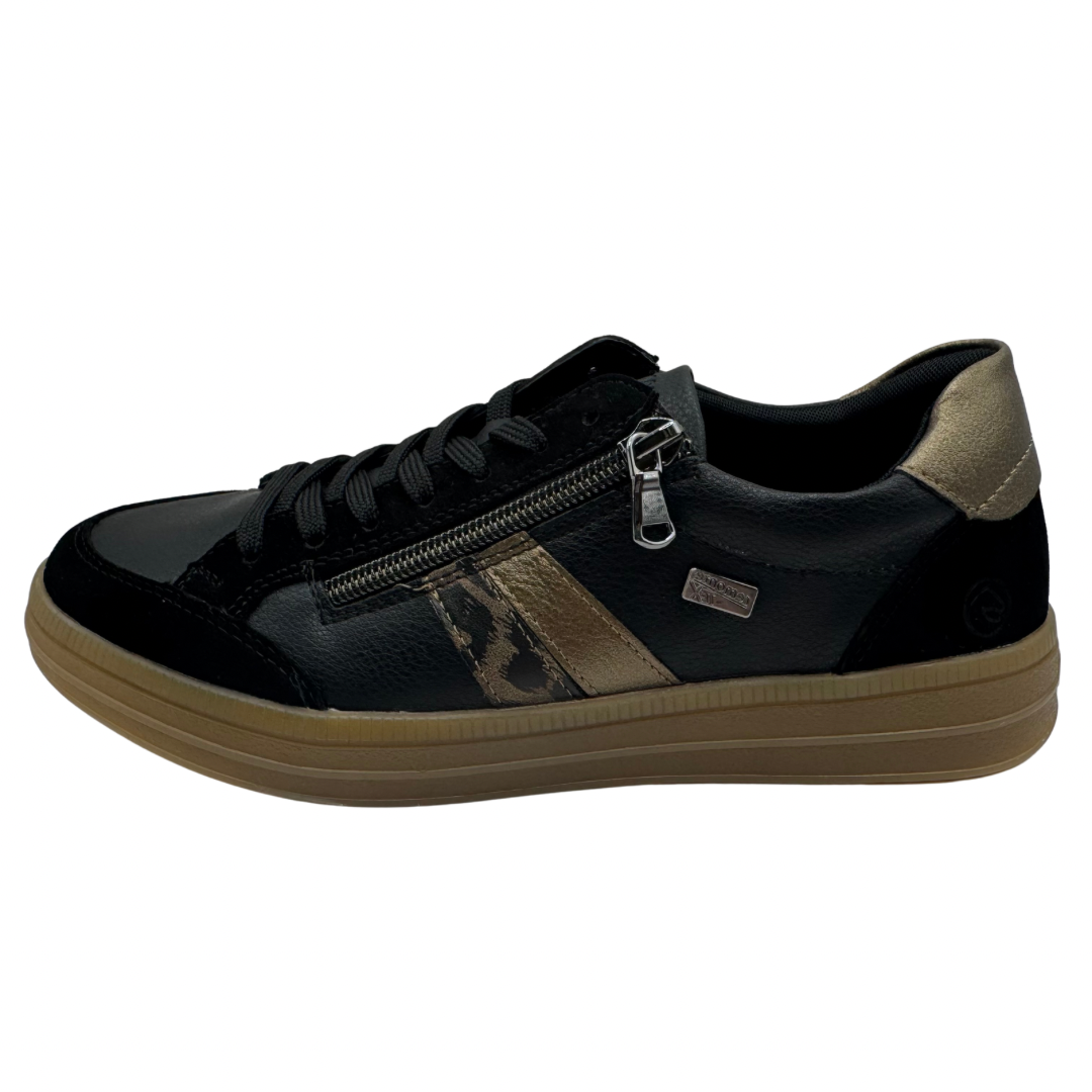 Remonte Black & Bronze Trainers with Leopard Print Detail