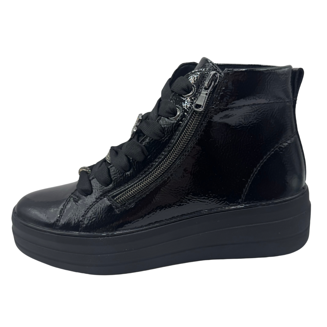 Rieker All Black Wedged Trainer Boots with Front Zip