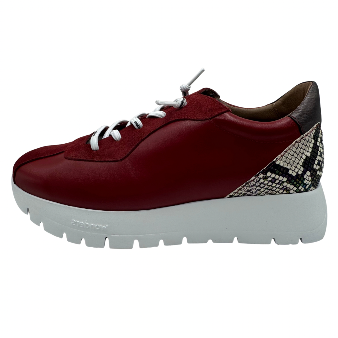 Wonders Red & Snake Print Wedge Trainers
