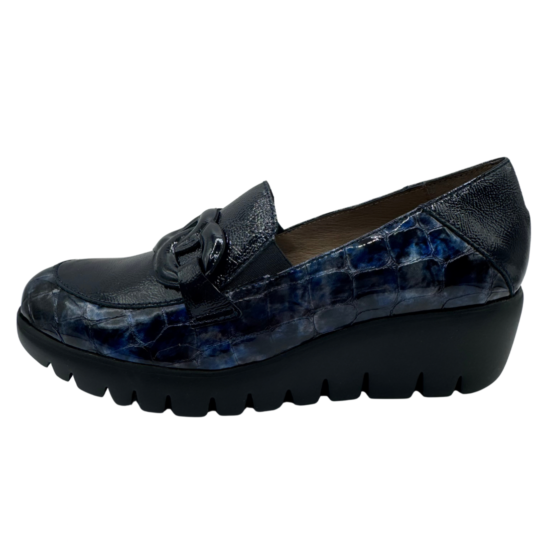 Wonders Navy Wedge Patent Loafers