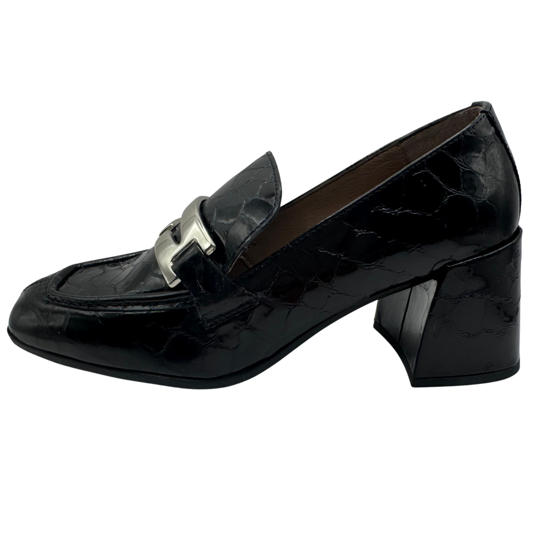 Wonders Black Patent Heeled Loafers