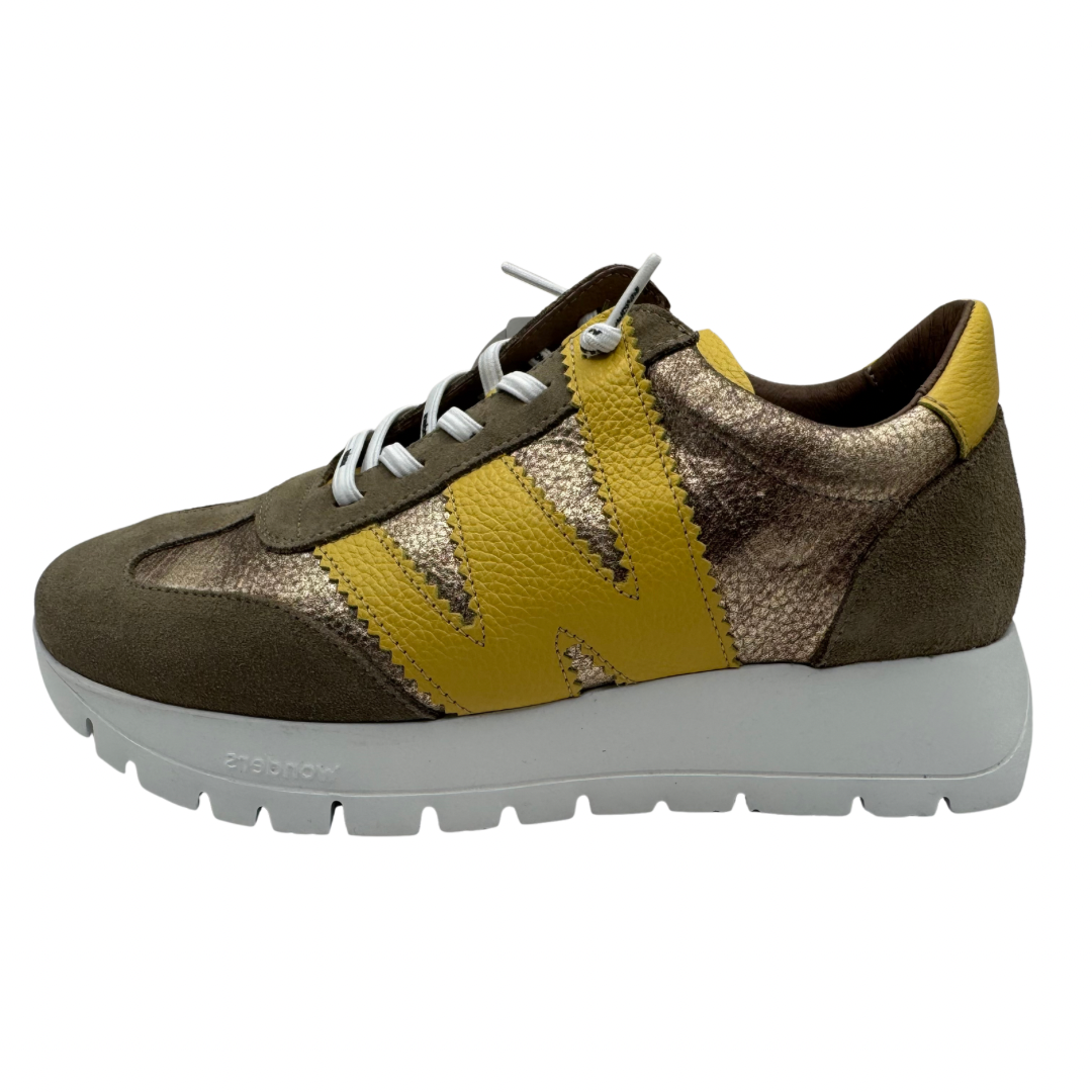 Wonders Taupe & Yellow Wedge Trainers