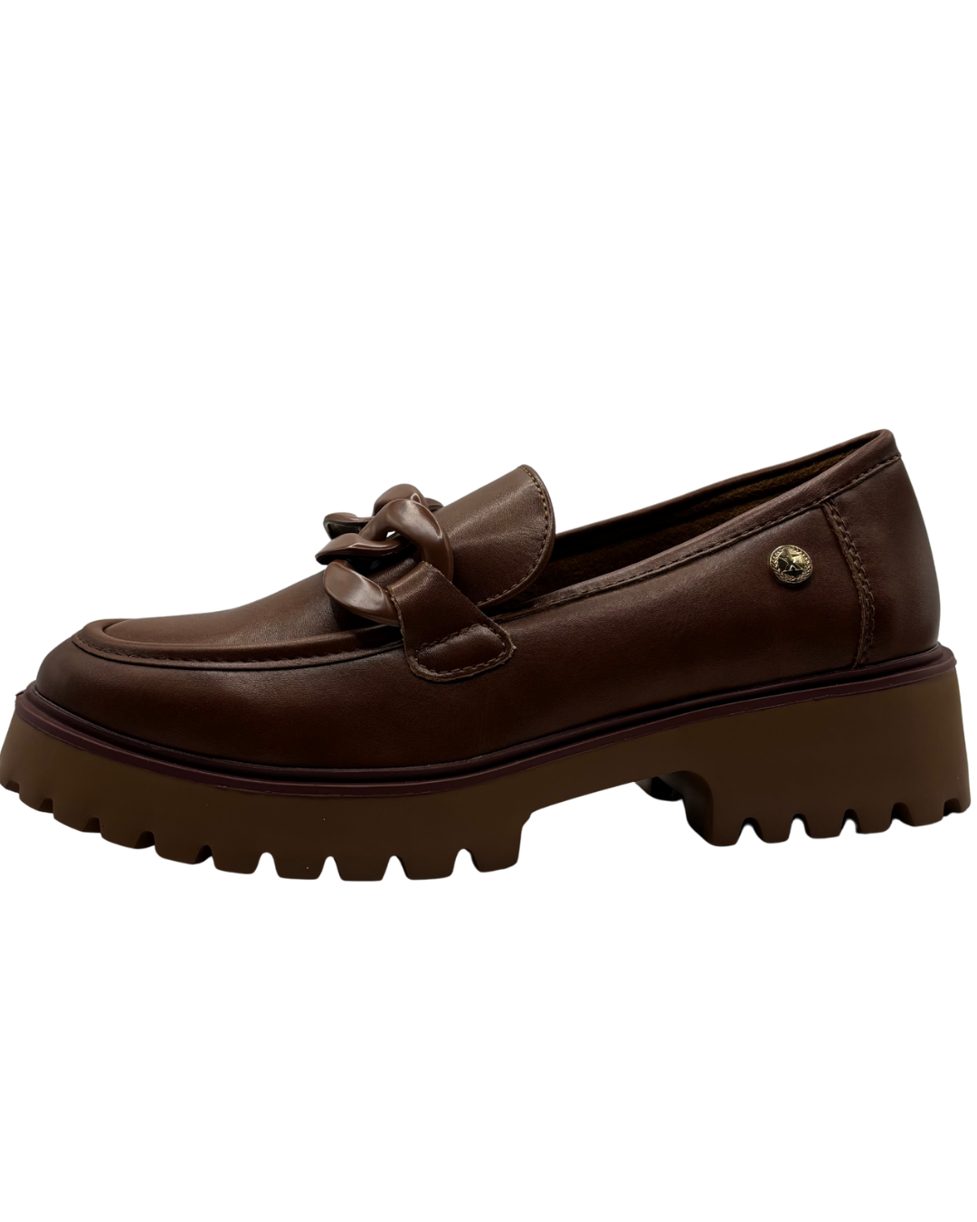 XTI Brown Wedged Loafer with Gold Buckle Detail