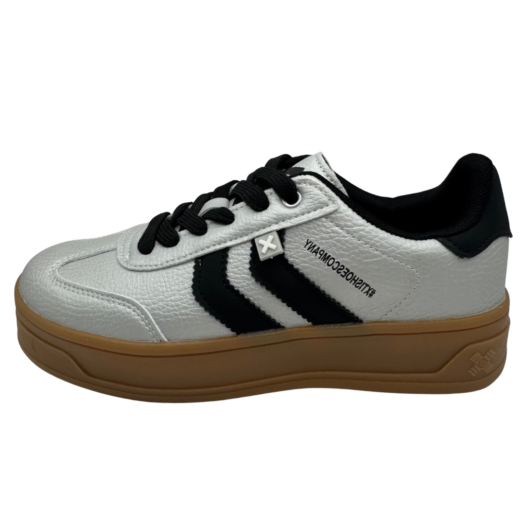 XTI White and Beige Suede Trainers with Blue and Red Detail